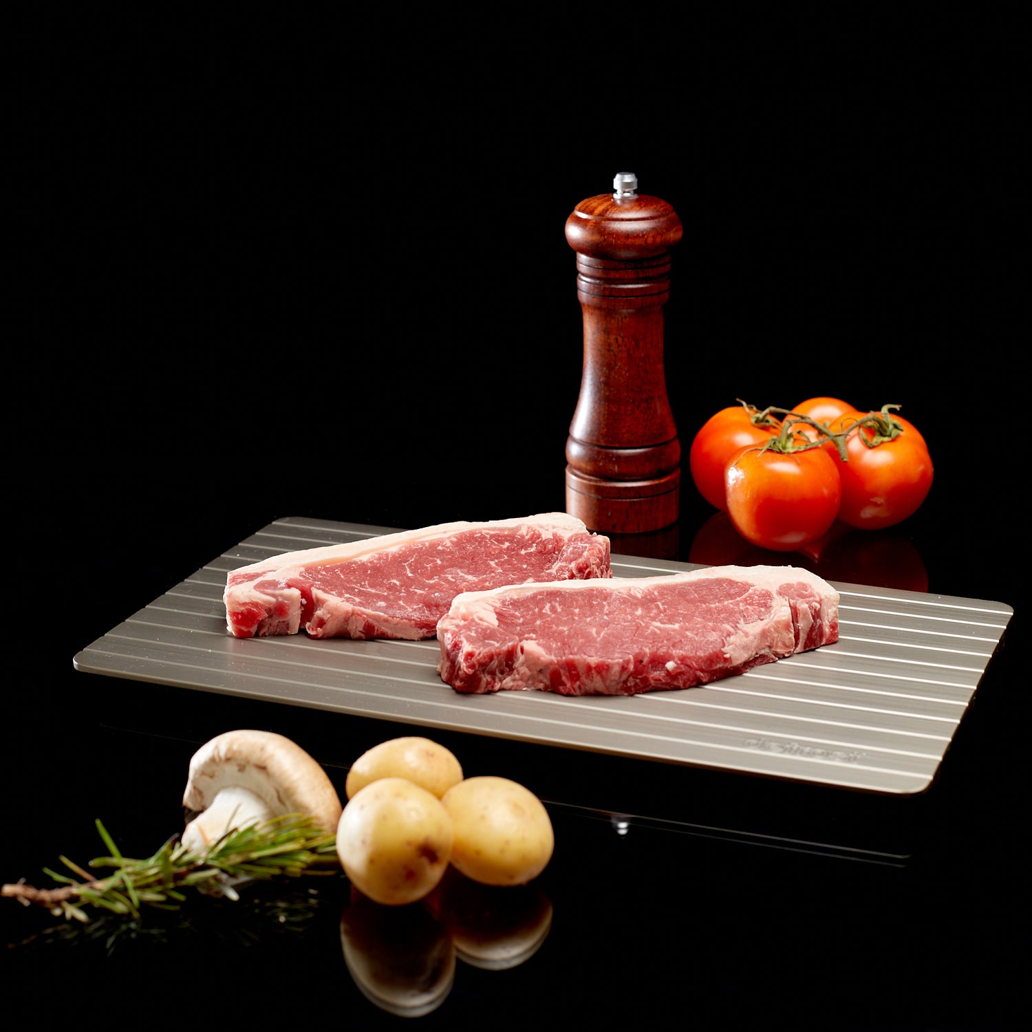 Gracias a la conductividad térmica del aluminio, tus alimentos se descongelan hasta 3 veces más rápido que en cualquier superficie común.